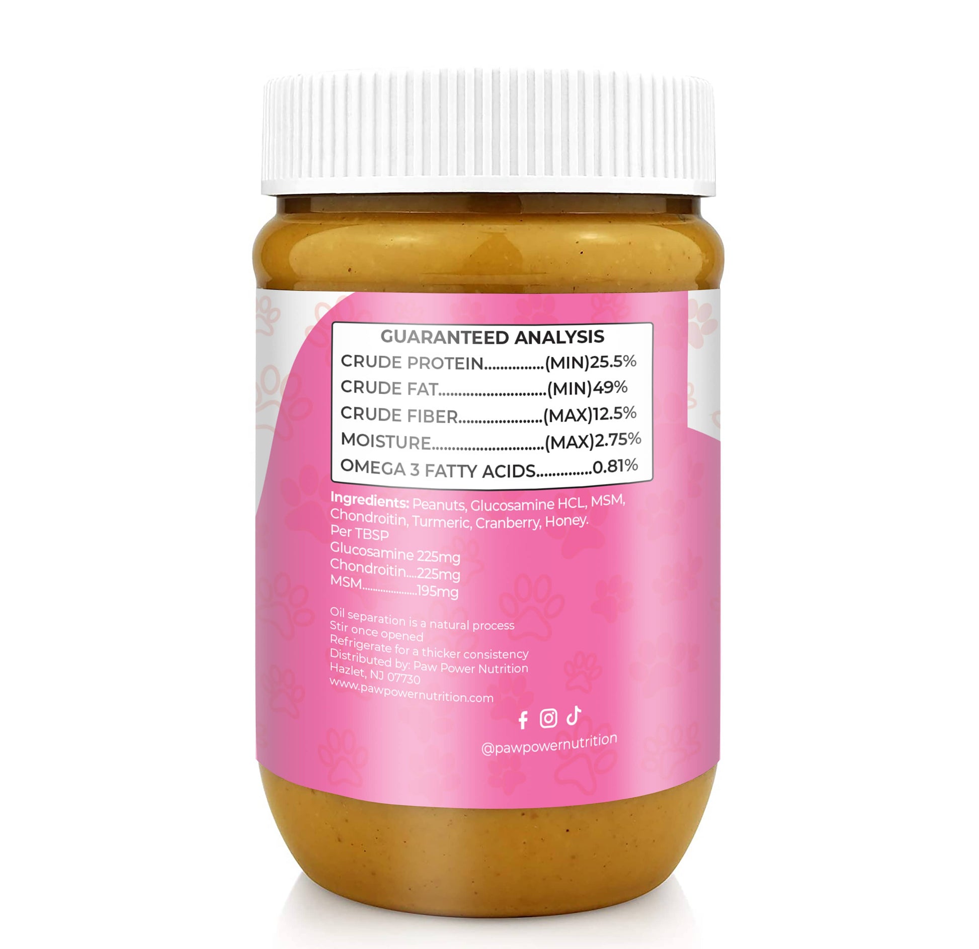 Safe and delicious. Xylitol free. Gluten-free. Berry Flexible Dawg Butter is a delicious and convenient way to protect your dog’s hips & joints. In every tablespoon of this dog-safe peanut butter, you get a fully dosed joint formula along with peanuts, cranberry, and honey. Hip and joint issues are common with dogs, taking a preventative supplement can help alleviate and/or avoid these issues. No longer do you have to force your dog to take pills to get their joint protection.